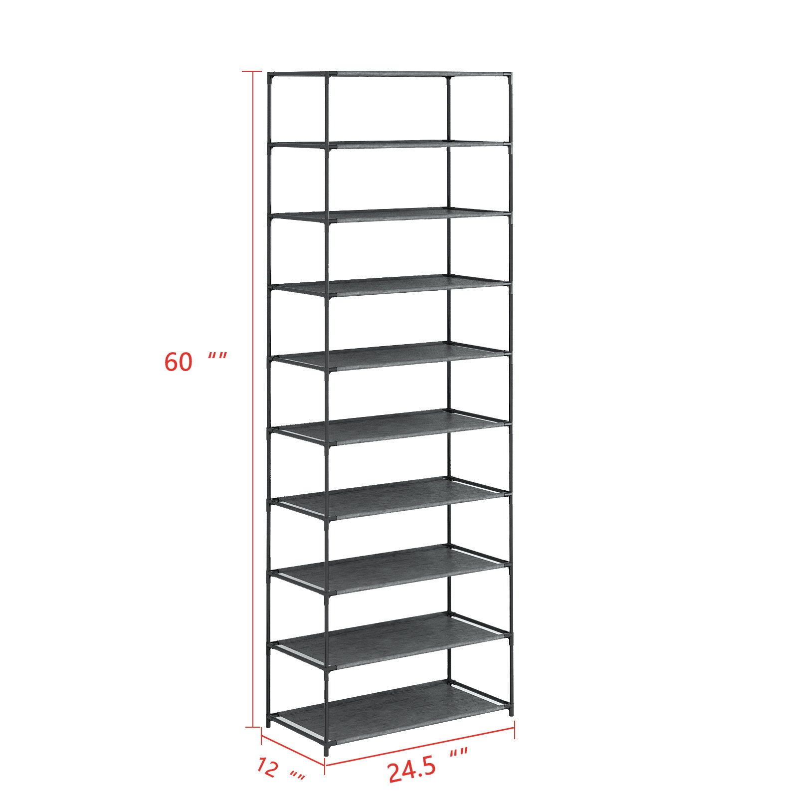 The size is 24.4 inches x 12 -inch width x 61.4 inches high (62 x 30.5 x 156 cm), which provides you with more space and easy to manage shoes. The shoe rack can accommodate up to 30 pairs of shoes. [Function] Very suitable for sports shoes, flat shoes, casual shoes, children's shoes, you can use appropriate boots and high heels to remove one floor