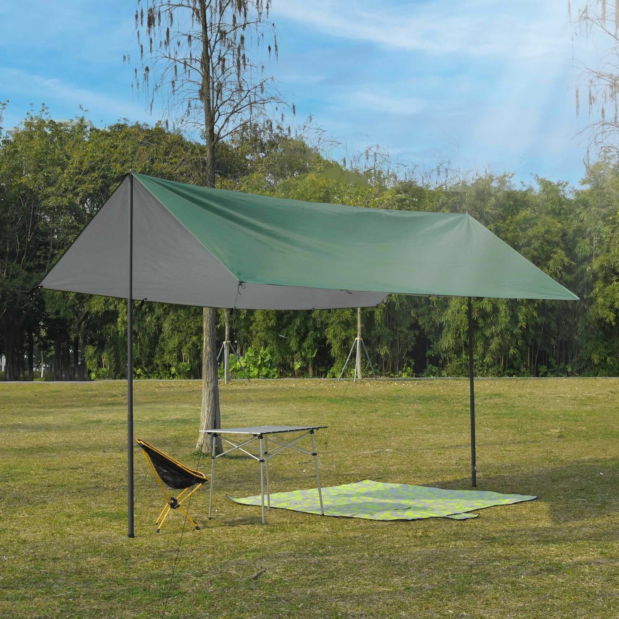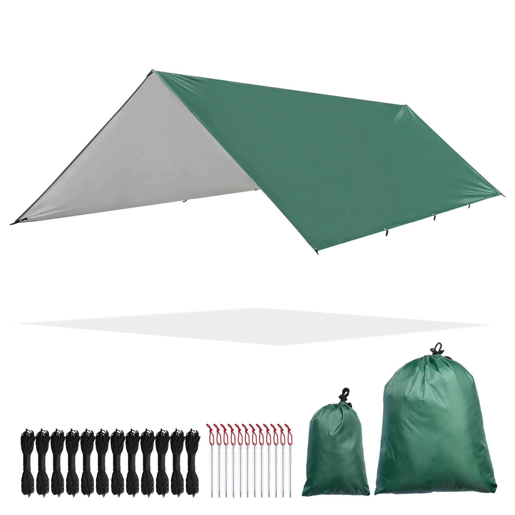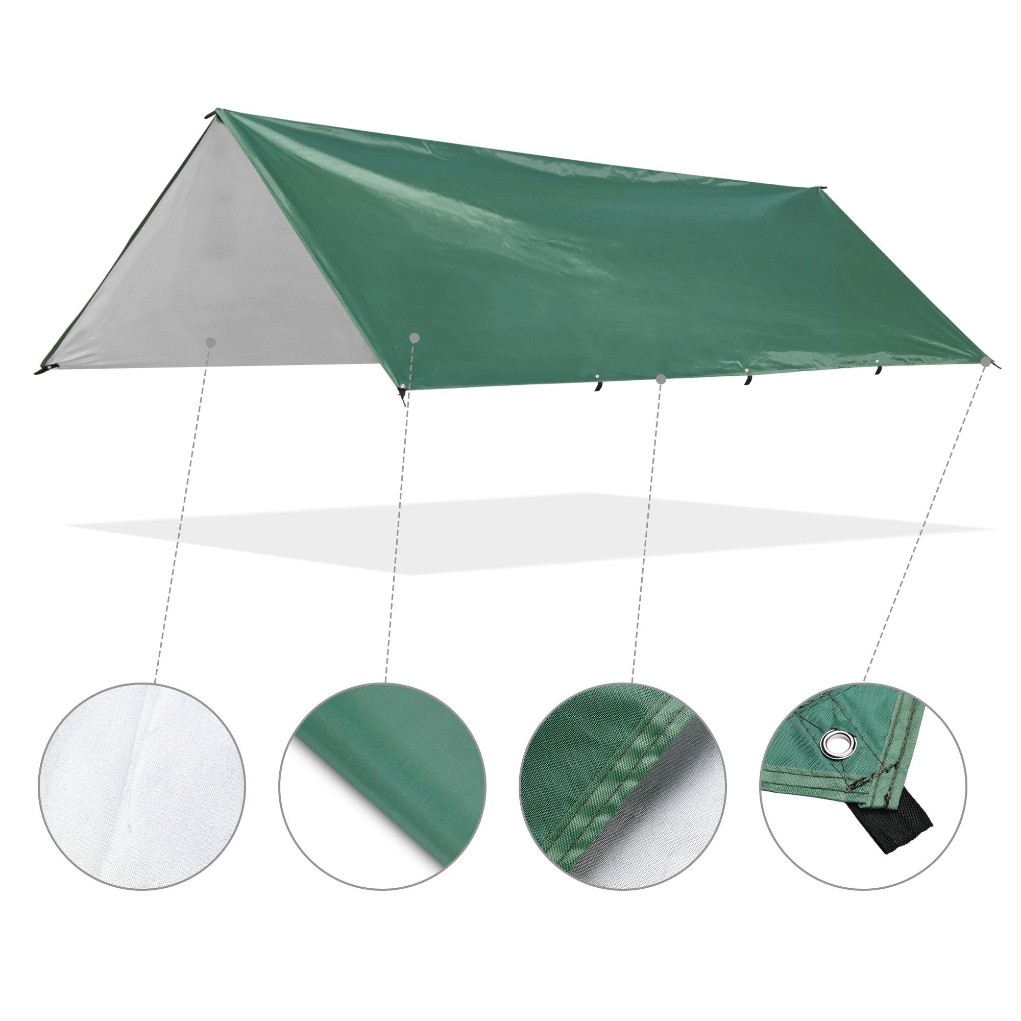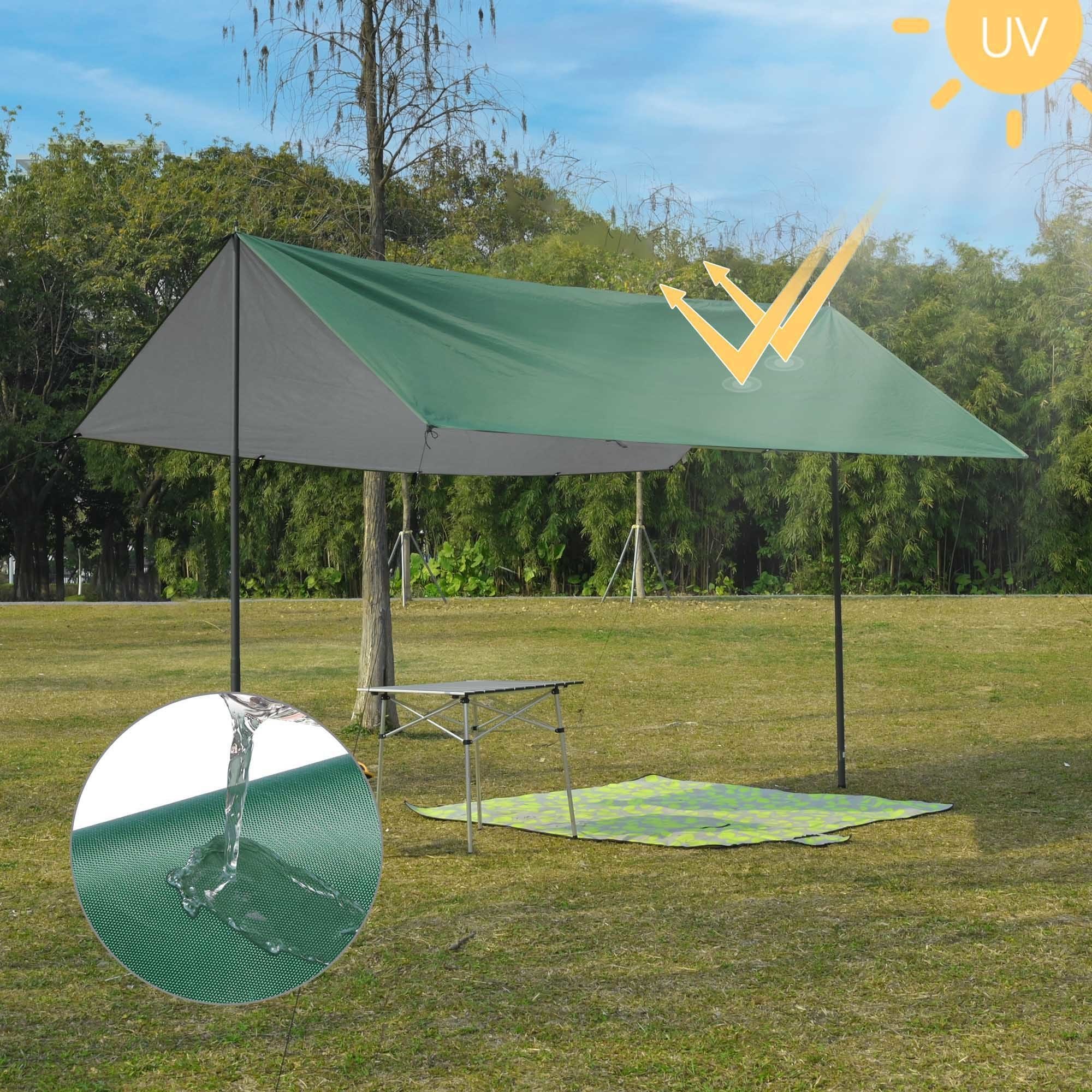 - UV Protection & Water Resistance - Made of 210D oxford fabric with silver PA coating; the tarp offers UV50+ protection for protecting you from sunlight; avoiding sunburn and reducing temperature in hot summer; shelter with PU3000mm water resistance is suitable for using on drizzling days; durable material ensures wear resistance and tear resistance for frequent use