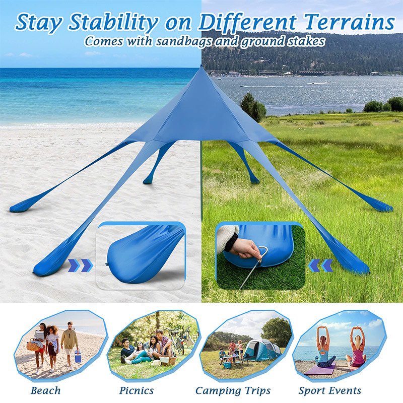 Elastic material enables you to freely move the sandbags and pole to adjust the shade.