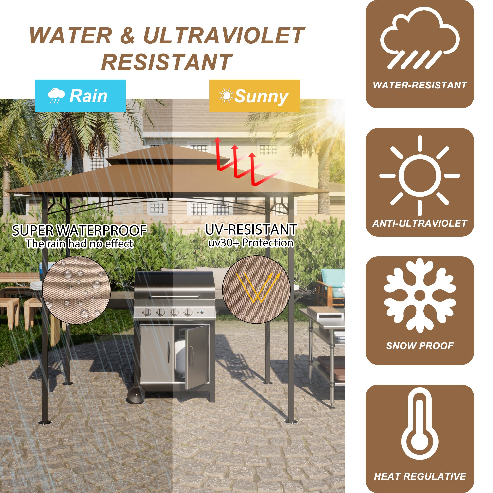 How about having a barbecue party with your friends on weekends? Two handy shelves for grill accessories, drinks, and food. The Grill Gazebo can offer you lots of shade and shelter in the hot sun and light rain. And the entire gazebo tent is big enough to accommodate around 3-4 people. Besides, the gazebo canopy used a high-grade powder-coated steel frame that resists water, rust, and corrosion. The gazebo tent fabric is used with durable UV protection polyester fabric, protecting you from the sun and light rain. Most importantly, our gazebo canopy is designed with a double-vented roof. The double top design makes the whole gazebo tent more beautiful, and also can make the BBQ gazebo more effective in wind resistance and UV resistance.