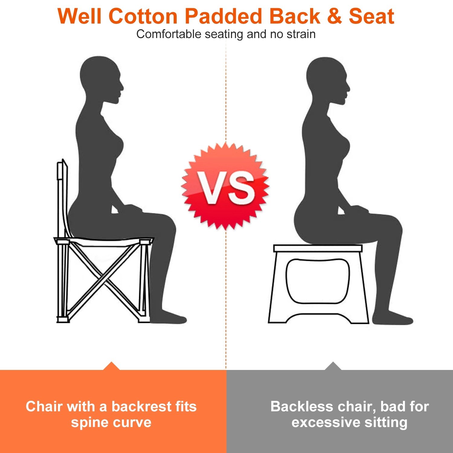 *330LBS Max Load Chair*:Come with thickened steel frame with 16mm in diameter,reinforced connection and strong 600Dx300D Oxford fabric,this folding chair’s max weight capacity is up to 330 lbs.