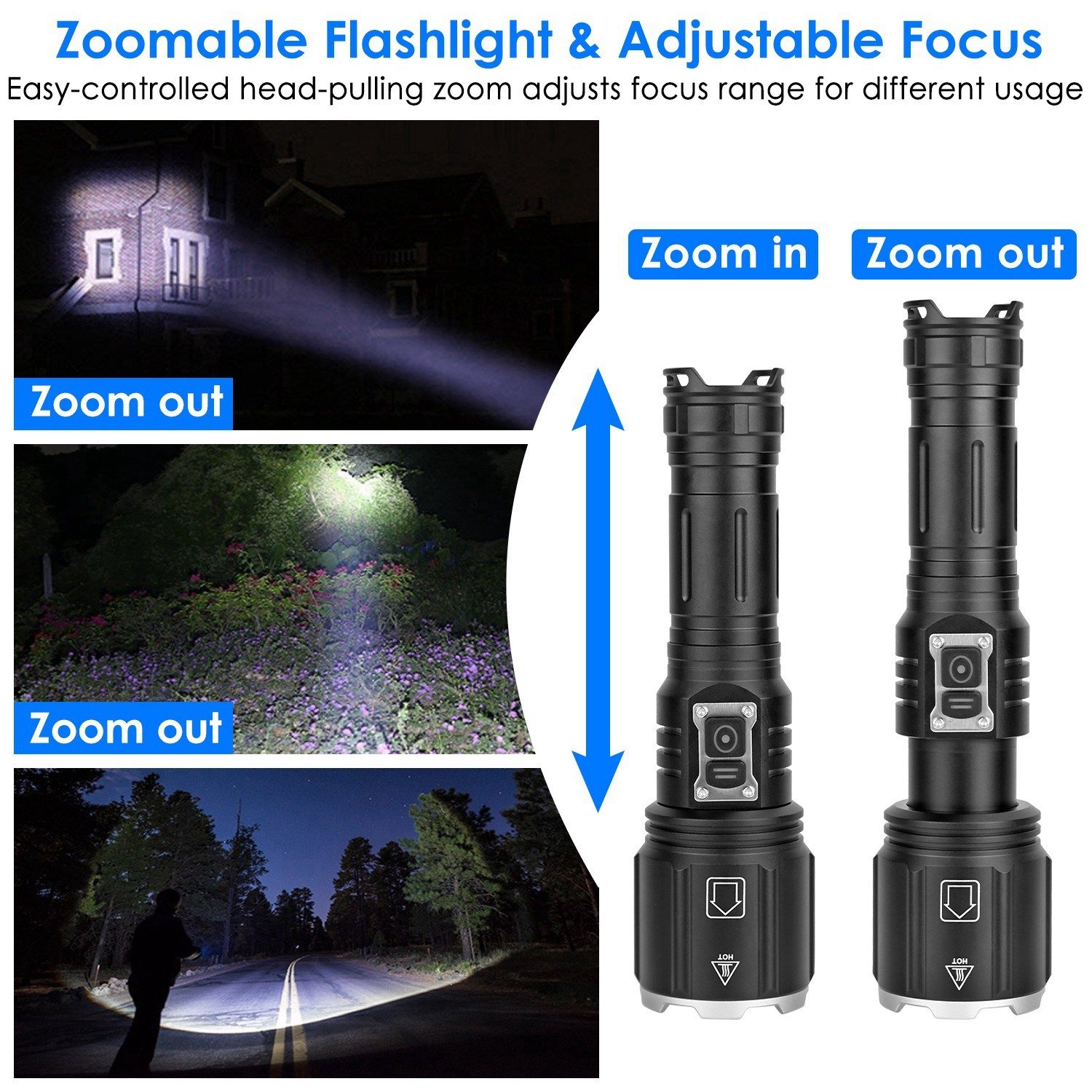 *Retractable Flashlight*:You can zoom the light in and out by pulling the head. If you rotate the head; the light will become clear and in different shapes. You can change it into spotlight for long-range observation or floodlight for large area illumination. It is suitable for camping; hiking; repairing or an outage.